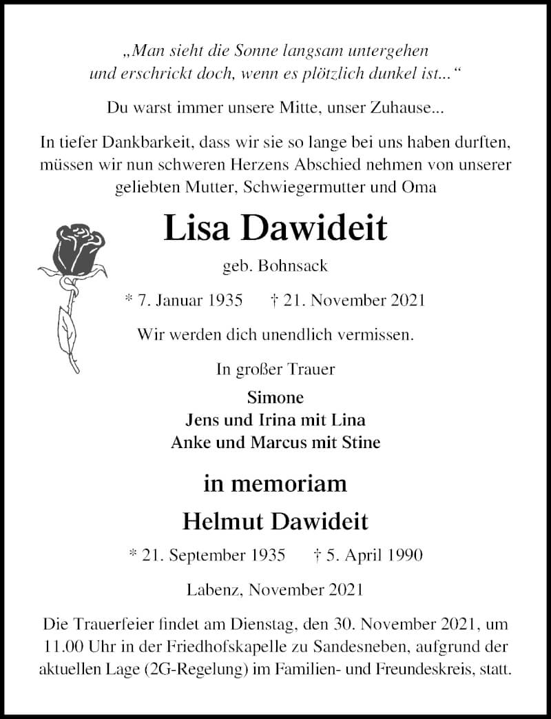 Hier finden Sie alle Traueranzeigen aus der Zeitung, die bisher für Helmut Dawideit erschienen sind. Weitere Traueranzeigen, die in der Zeitung erscheinen, werden hier ebenfalls aufgelistet