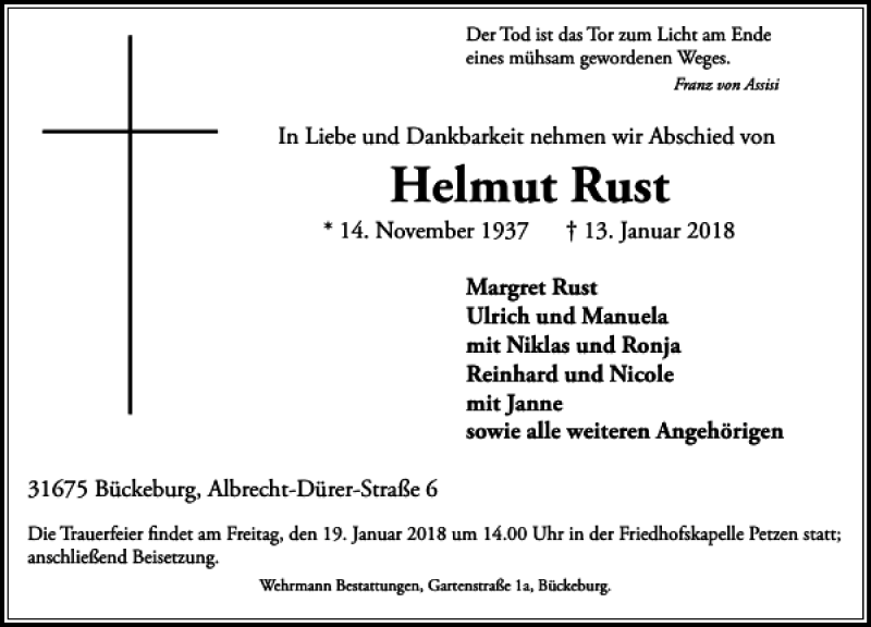 Hier finden Sie alle Traueranzeigen aus der Zeitung, die bisher für Helmut Rust erschienen sind. Weitere Traueranzeigen, die in der Zeitung erscheinen, werden hier ebenfalls aufgelistet
