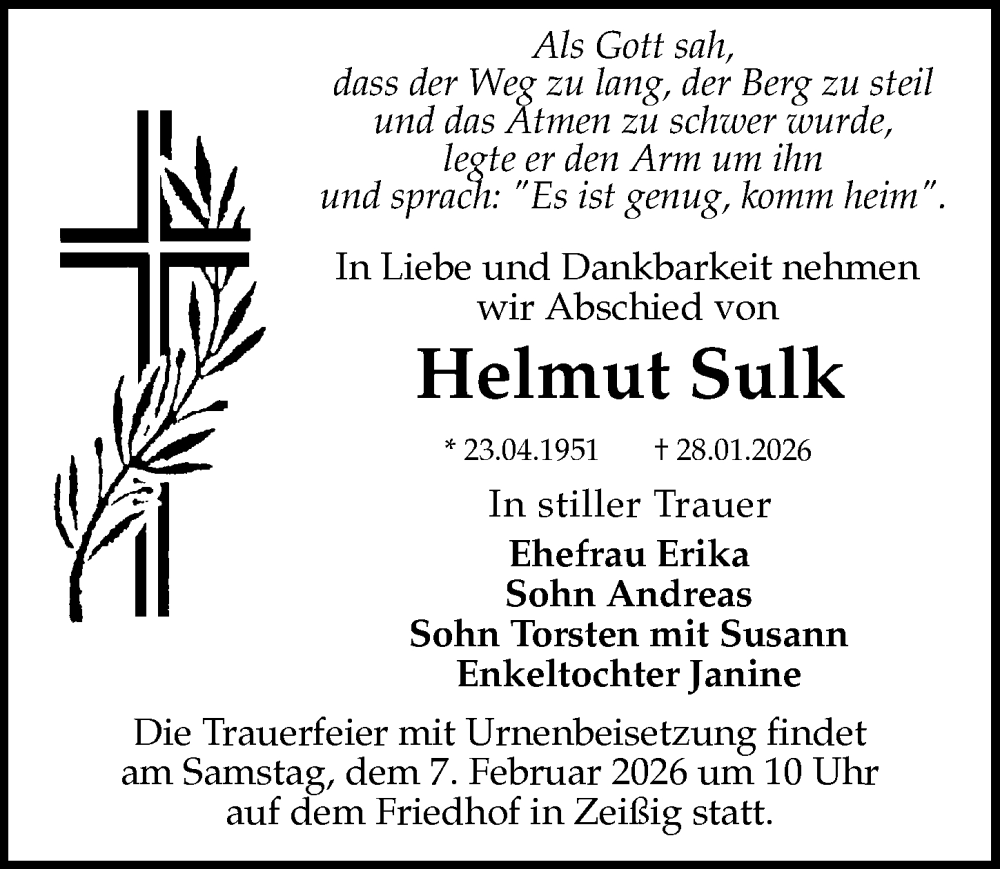 Hier finden Sie alle Traueranzeigen aus der Zeitung, die bisher für Helmut Sulk erschienen sind. Weitere Traueranzeigen, die in der Zeitung erscheinen, werden hier ebenfalls aufgelistet