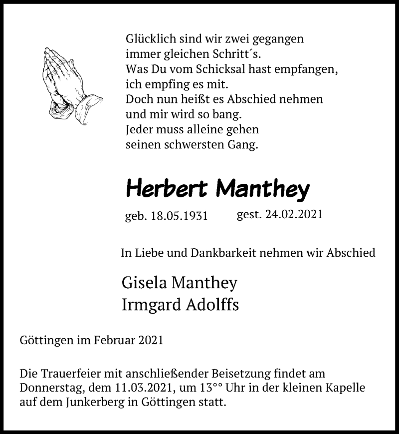 Hier finden Sie alle Traueranzeigen aus der Zeitung, die bisher für Herbert Manthey erschienen sind. Weitere Traueranzeigen, die in der Zeitung erscheinen, werden hier ebenfalls aufgelistet