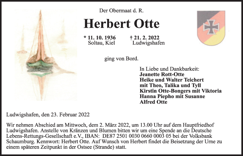 Hier finden Sie alle Traueranzeigen aus der Zeitung, die bisher für Herbert Otte erschienen sind. Weitere Traueranzeigen, die in der Zeitung erscheinen, werden hier ebenfalls aufgelistet