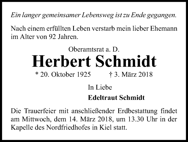 Hier finden Sie alle Traueranzeigen aus der Zeitung, die bisher für Herbert Schmidt erschienen sind. Weitere Traueranzeigen, die in der Zeitung erscheinen, werden hier ebenfalls aufgelistet