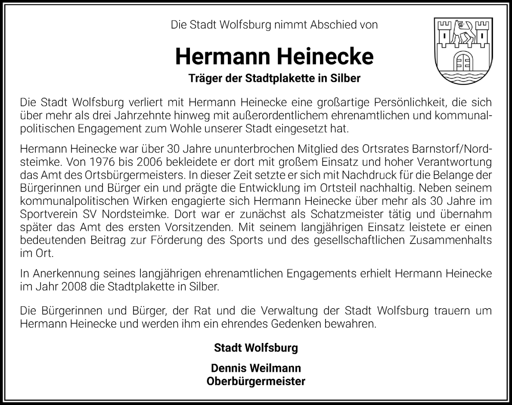 Hier finden Sie alle Traueranzeigen aus der Zeitung, die bisher für Hermann Heinecke erschienen sind. Weitere Traueranzeigen, die in der Zeitung erscheinen, werden hier ebenfalls aufgelistet