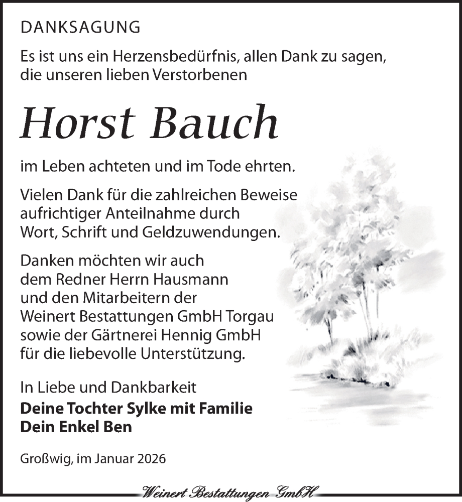 Hier finden Sie alle Traueranzeigen aus der Zeitung, die bisher für Horst Bauch erschienen sind. Weitere Traueranzeigen, die in der Zeitung erscheinen, werden hier ebenfalls aufgelistet