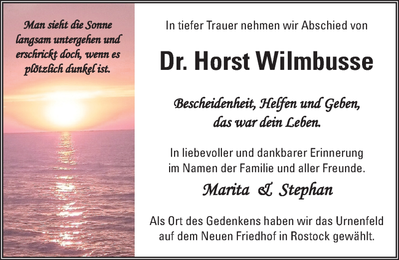 Hier finden Sie alle Traueranzeigen aus der Zeitung, die bisher für Horst Wilmbusse erschienen sind. Weitere Traueranzeigen, die in der Zeitung erscheinen, werden hier ebenfalls aufgelistet