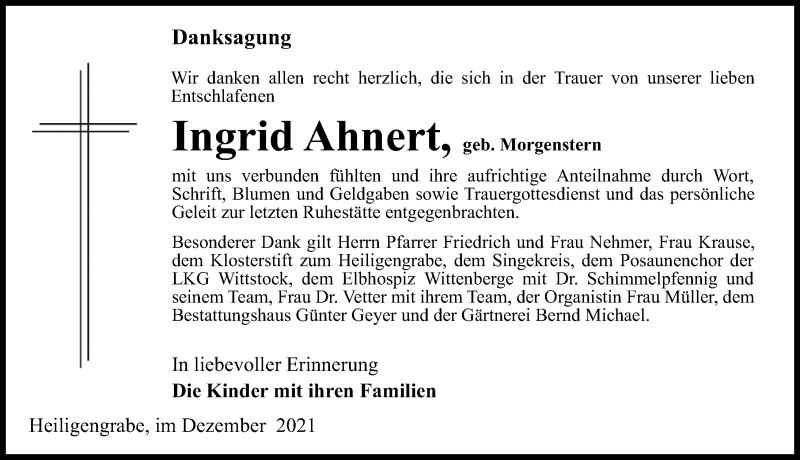 Hier finden Sie alle Traueranzeigen aus der Zeitung, die bisher für Ingrid Ahnert erschienen sind. Weitere Traueranzeigen, die in der Zeitung erscheinen, werden hier ebenfalls aufgelistet