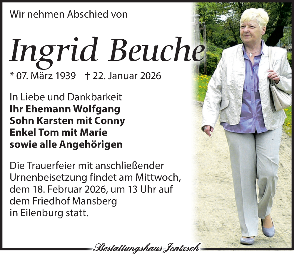 Hier finden Sie alle Traueranzeigen aus der Zeitung, die bisher für Ingrid Beuche erschienen sind. Weitere Traueranzeigen, die in der Zeitung erscheinen, werden hier ebenfalls aufgelistet