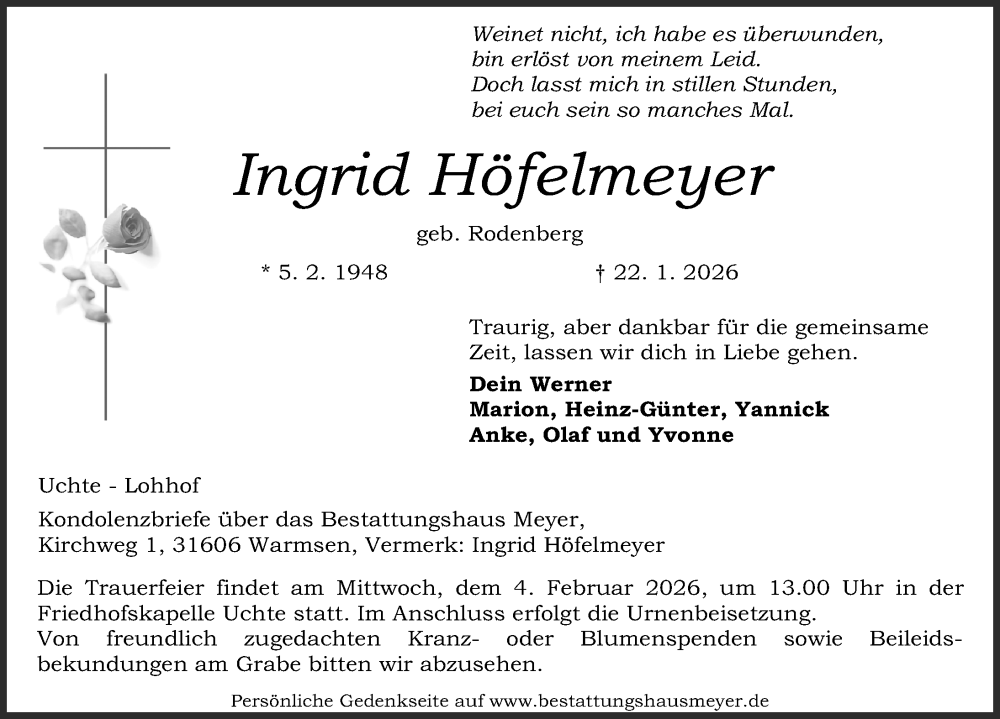 Hier finden Sie alle Traueranzeigen aus der Zeitung, die bisher für Ingrid Höfelmeyer erschienen sind. Weitere Traueranzeigen, die in der Zeitung erscheinen, werden hier ebenfalls aufgelistet