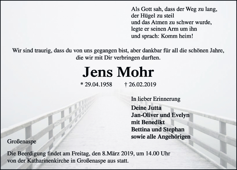 Hier finden Sie alle Traueranzeigen aus der Zeitung, die bisher für Jens Mohr erschienen sind. Weitere Traueranzeigen, die in der Zeitung erscheinen, werden hier ebenfalls aufgelistet