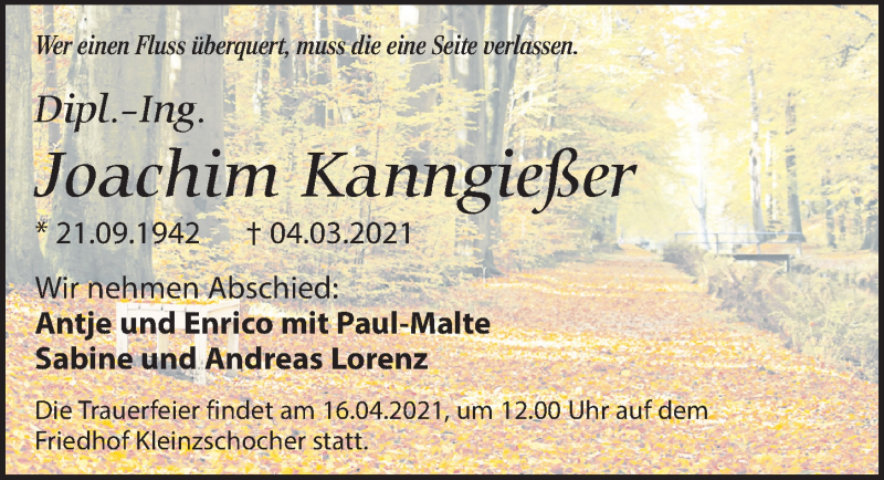 Hier finden Sie alle Traueranzeigen aus der Zeitung, die bisher für Joachim Kanngießer erschienen sind. Weitere Traueranzeigen, die in der Zeitung erscheinen, werden hier ebenfalls aufgelistet