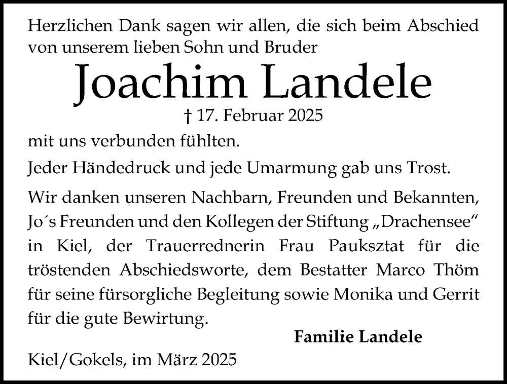 Hier finden Sie alle Traueranzeigen aus der Zeitung, die bisher für Joachim Landele erschienen sind. Weitere Traueranzeigen, die in der Zeitung erscheinen, werden hier ebenfalls aufgelistet