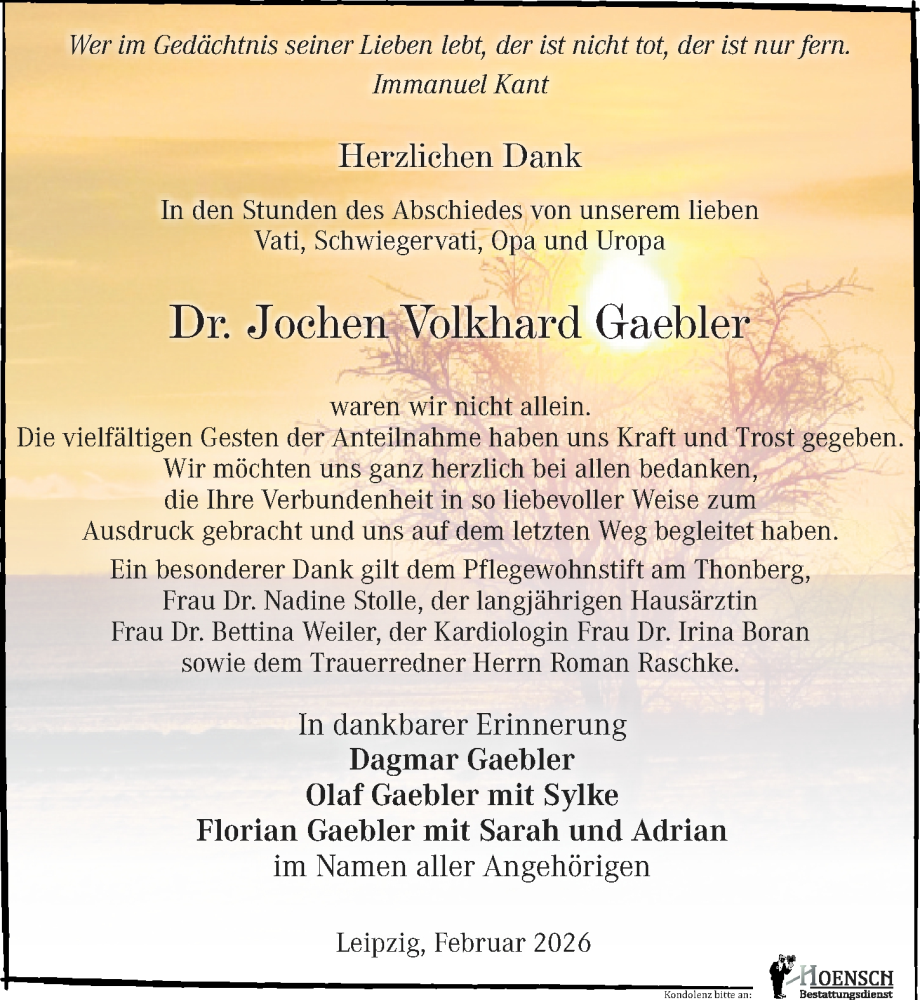 Hier finden Sie alle Traueranzeigen aus der Zeitung, die bisher für Jochen Volkhard Gaebler erschienen sind. Weitere Traueranzeigen, die in der Zeitung erscheinen, werden hier ebenfalls aufgelistet