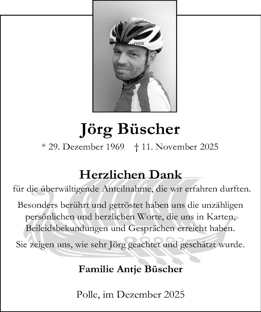 Hier finden Sie alle Traueranzeigen aus der Zeitung, die bisher für Jörg Büscher erschienen sind. Weitere Traueranzeigen, die in der Zeitung erscheinen, werden hier ebenfalls aufgelistet