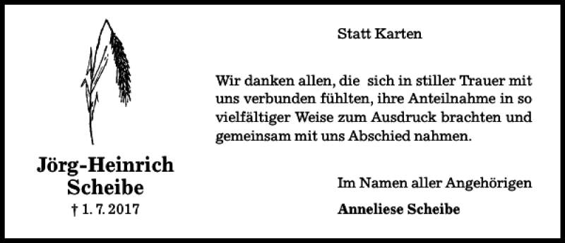 Hier finden Sie alle Traueranzeigen aus der Zeitung, die bisher für Jörg-Heinrich Trd Scheibe erschienen sind. Weitere Traueranzeigen, die in der Zeitung erscheinen, werden hier ebenfalls aufgelistet