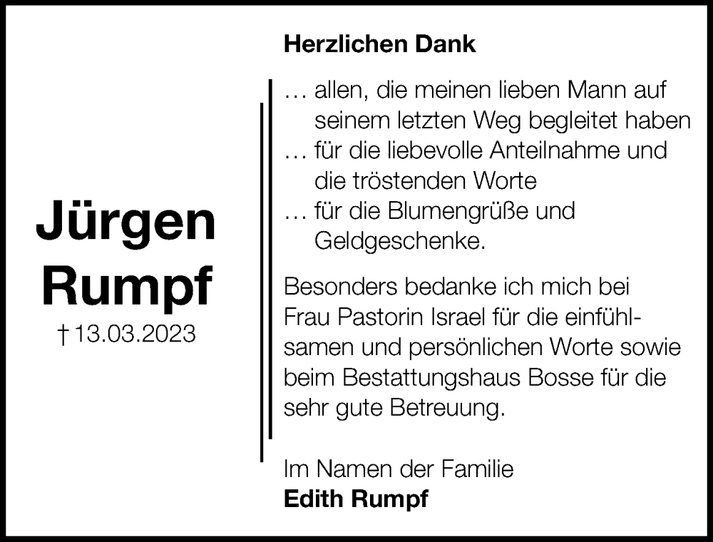 Hier finden Sie alle Traueranzeigen aus der Zeitung, die bisher für Jürgen Rumpf erschienen sind. Weitere Traueranzeigen, die in der Zeitung erscheinen, werden hier ebenfalls aufgelistet