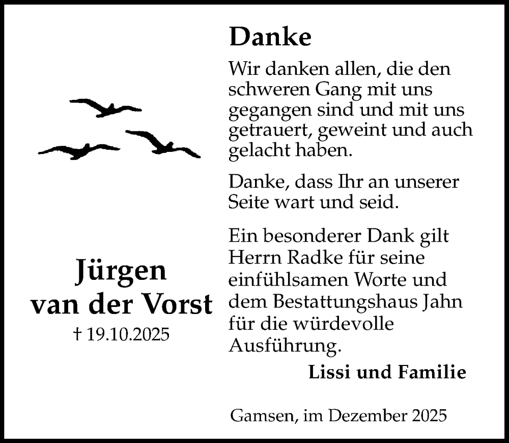 Hier finden Sie alle Traueranzeigen aus der Zeitung, die bisher für Jürgen van der Vorst erschienen sind. Weitere Traueranzeigen, die in der Zeitung erscheinen, werden hier ebenfalls aufgelistet