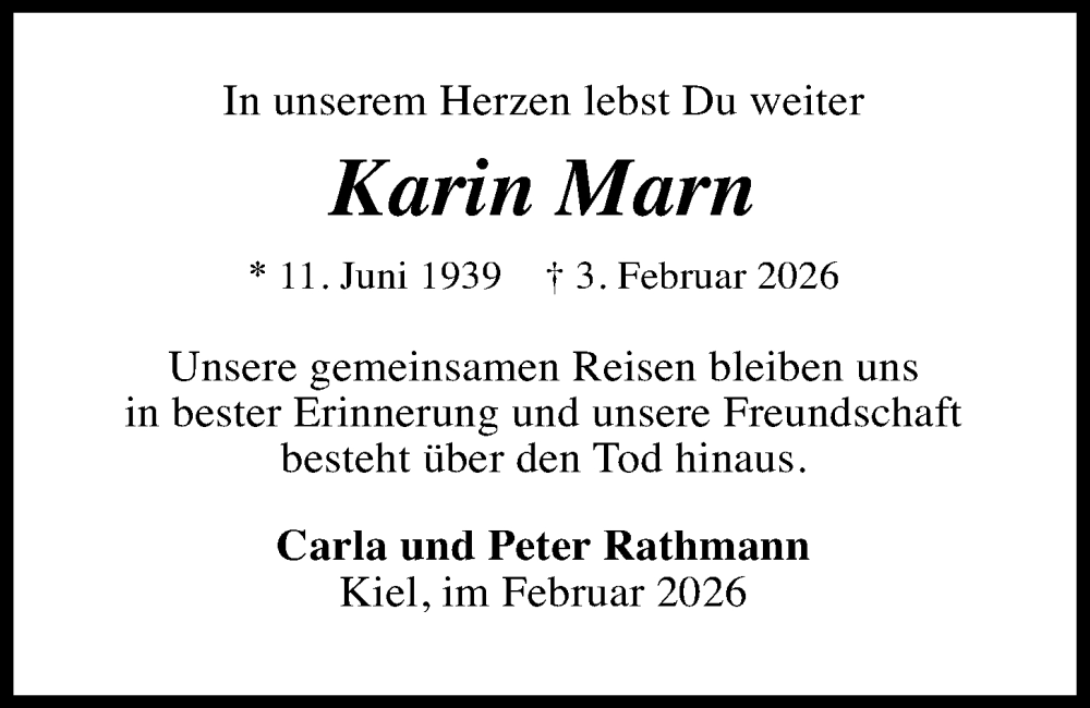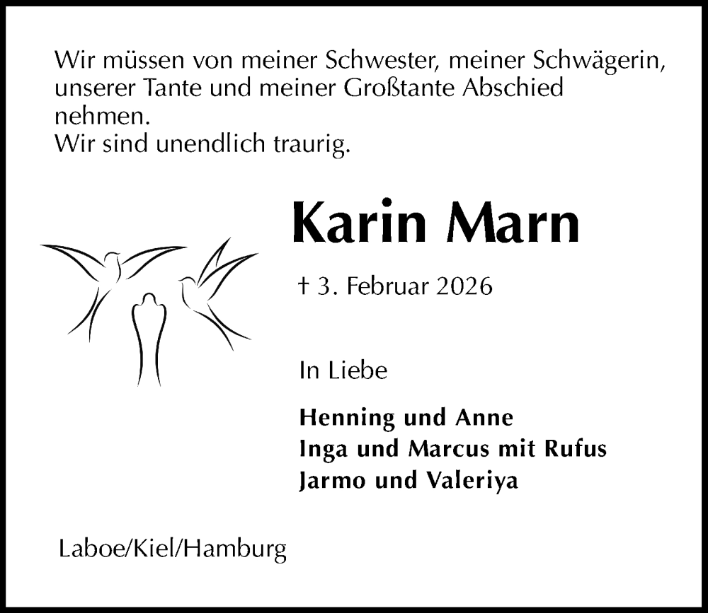 Hier finden Sie alle Traueranzeigen aus der Zeitung, die bisher für Karin Marn erschienen sind. Weitere Traueranzeigen, die in der Zeitung erscheinen, werden hier ebenfalls aufgelistet