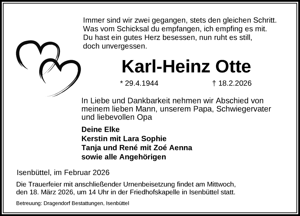 Hier finden Sie alle Traueranzeigen aus der Zeitung, die bisher für Karl-Heinz Otte erschienen sind. Weitere Traueranzeigen, die in der Zeitung erscheinen, werden hier ebenfalls aufgelistet