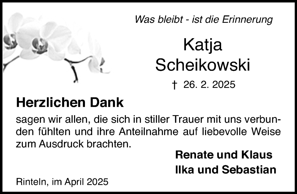 Hier finden Sie alle Traueranzeigen aus der Zeitung, die bisher für Katja Scheikowski erschienen sind. Weitere Traueranzeigen, die in der Zeitung erscheinen, werden hier ebenfalls aufgelistet