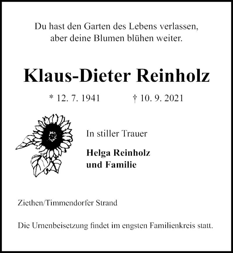 Hier finden Sie alle Traueranzeigen aus der Zeitung, die bisher für Klaus-Dieter Reinholz erschienen sind. Weitere Traueranzeigen, die in der Zeitung erscheinen, werden hier ebenfalls aufgelistet