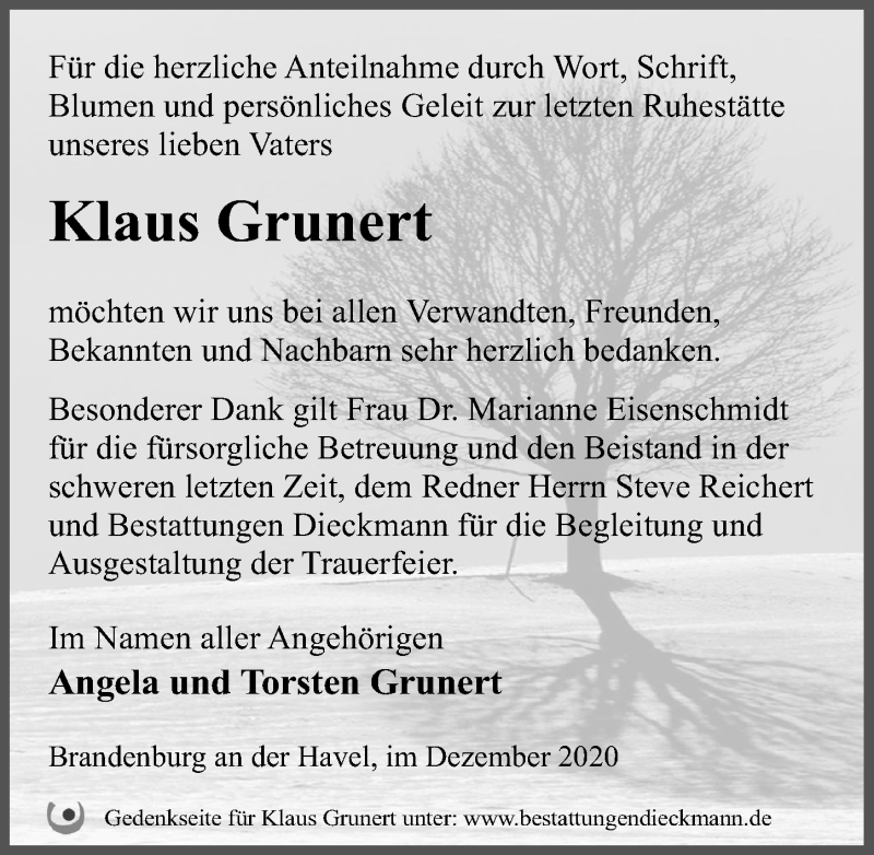 Hier finden Sie alle Traueranzeigen aus der Zeitung, die bisher für Klaus Grunert erschienen sind. Weitere Traueranzeigen, die in der Zeitung erscheinen, werden hier ebenfalls aufgelistet