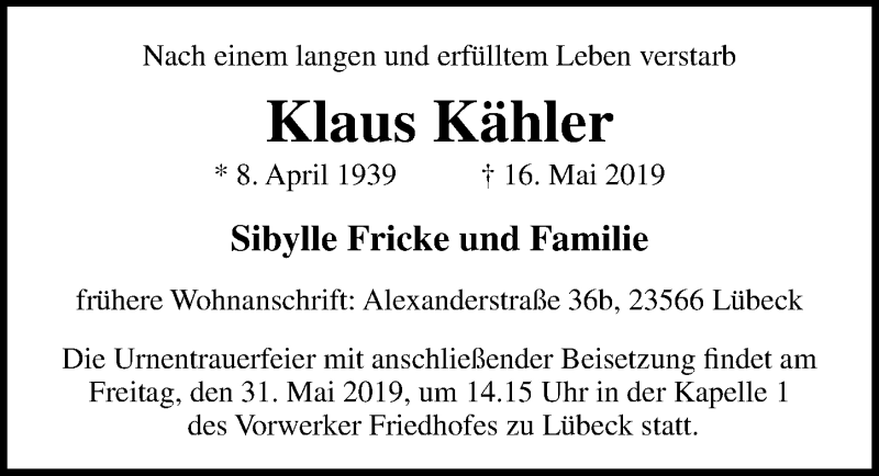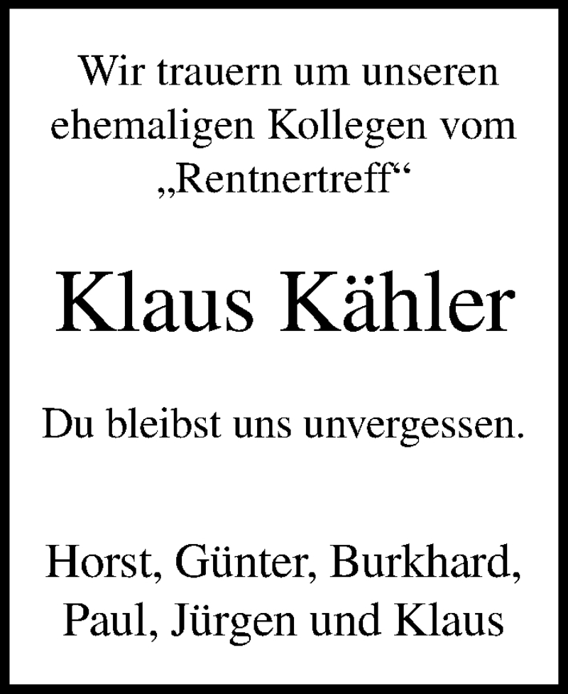 Hier finden Sie alle Traueranzeigen aus der Zeitung, die bisher für Klaus Kähler erschienen sind. Weitere Traueranzeigen, die in der Zeitung erscheinen, werden hier ebenfalls aufgelistet