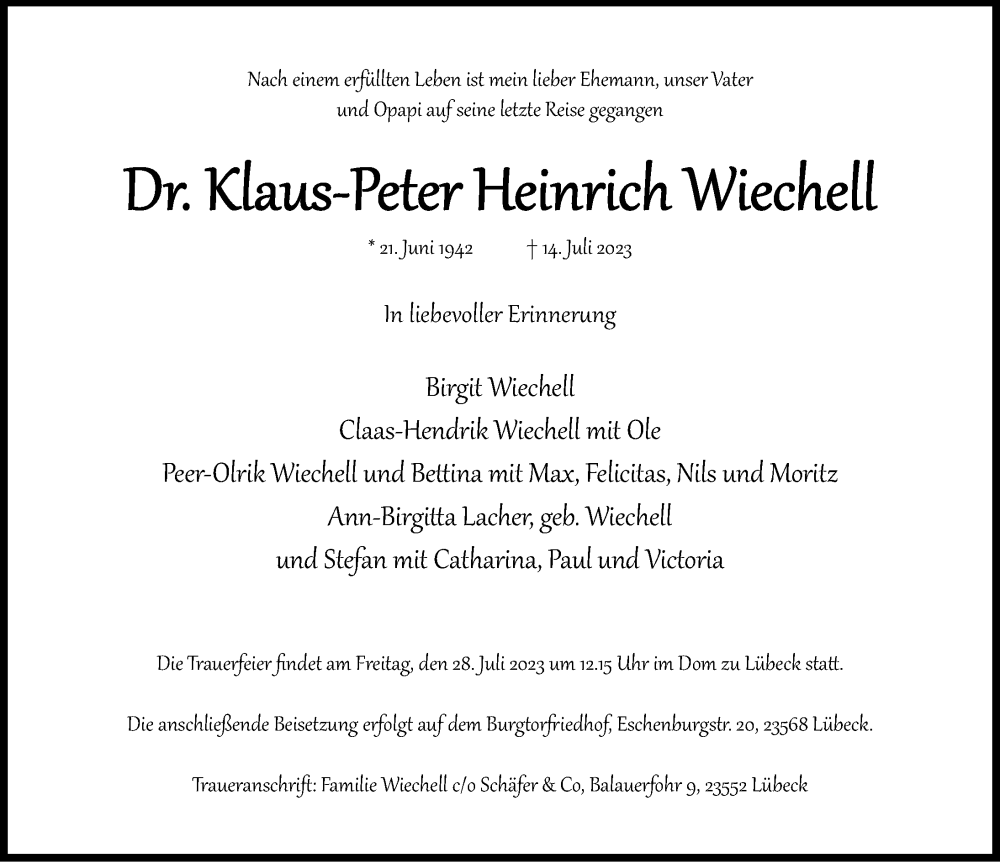 Hier finden Sie alle Traueranzeigen aus der Zeitung, die bisher für Klaus-Peter Wiechell erschienen sind. Weitere Traueranzeigen, die in der Zeitung erscheinen, werden hier ebenfalls aufgelistet