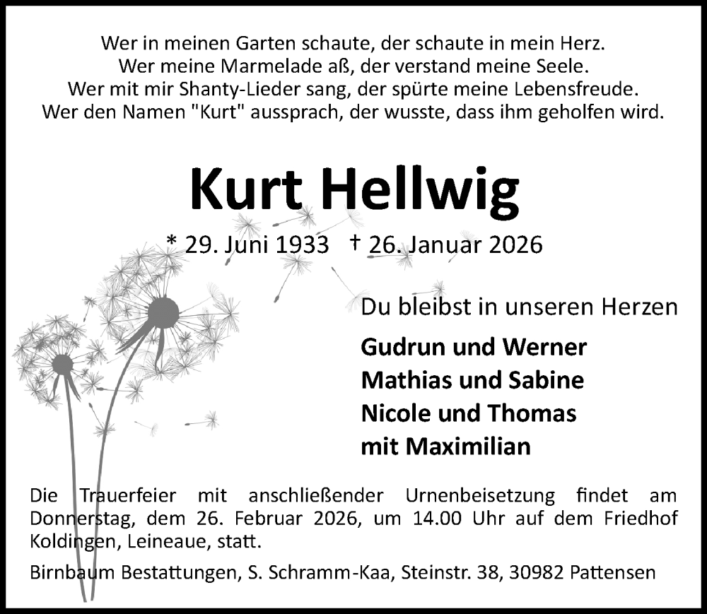 Hier finden Sie alle Traueranzeigen aus der Zeitung, die bisher für Kurt Hellwig erschienen sind. Weitere Traueranzeigen, die in der Zeitung erscheinen, werden hier ebenfalls aufgelistet