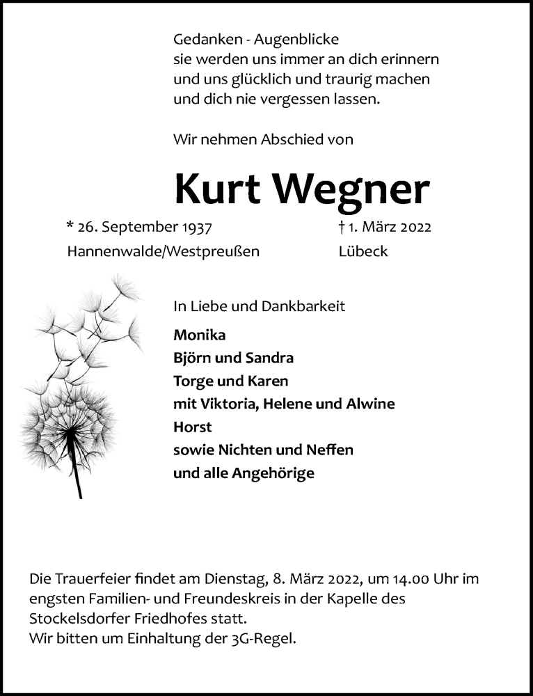 Hier finden Sie alle Traueranzeigen aus der Zeitung, die bisher für Kurt Wegner erschienen sind. Weitere Traueranzeigen, die in der Zeitung erscheinen, werden hier ebenfalls aufgelistet
