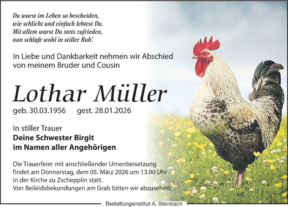 Hier finden Sie alle Traueranzeigen aus der Zeitung, die bisher für Lothar Müller erschienen sind. Weitere Traueranzeigen, die in der Zeitung erscheinen, werden hier ebenfalls aufgelistet