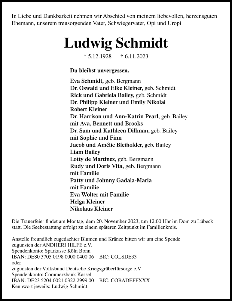 Hier finden Sie alle Traueranzeigen aus der Zeitung, die bisher für Ludwig Schmidt erschienen sind. Weitere Traueranzeigen, die in der Zeitung erscheinen, werden hier ebenfalls aufgelistet