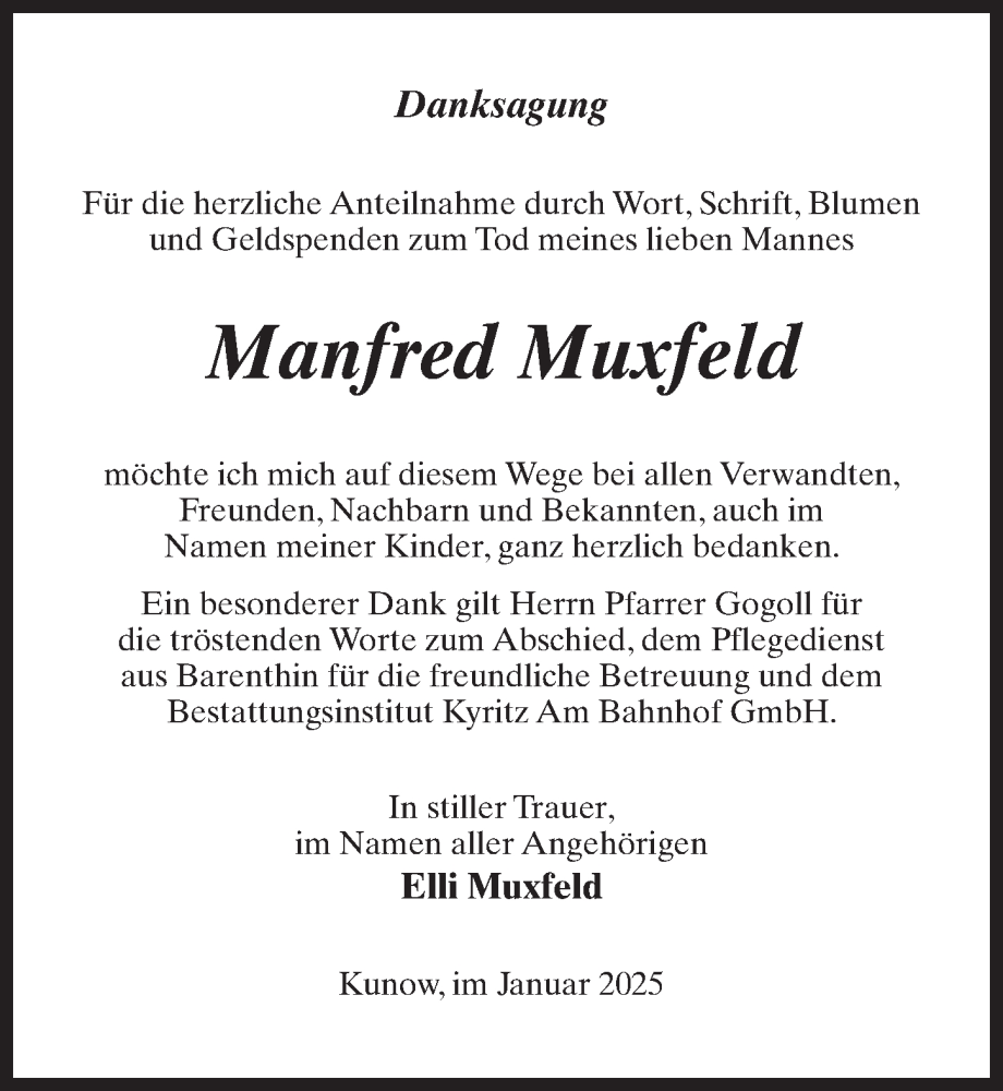 Hier finden Sie alle Traueranzeigen aus der Zeitung, die bisher für Manfred Muxfeld erschienen sind. Weitere Traueranzeigen, die in der Zeitung erscheinen, werden hier ebenfalls aufgelistet