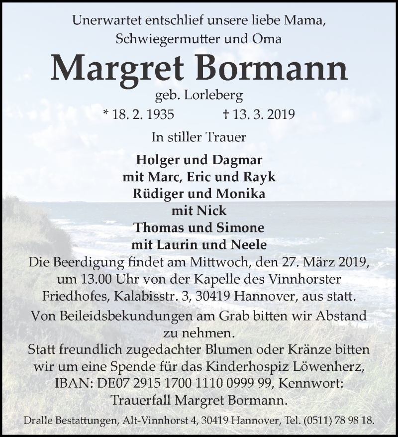 Hier finden Sie alle Traueranzeigen aus der Zeitung, die bisher für Margret Bormann erschienen sind. Weitere Traueranzeigen, die in der Zeitung erscheinen, werden hier ebenfalls aufgelistet