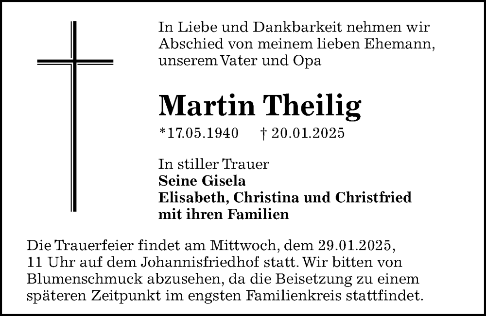 Hier finden Sie alle Traueranzeigen aus der Zeitung, die bisher für Martin Theilig erschienen sind. Weitere Traueranzeigen, die in der Zeitung erscheinen, werden hier ebenfalls aufgelistet