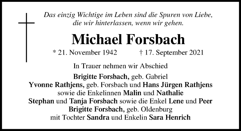 Hier finden Sie alle Traueranzeigen aus der Zeitung, die bisher für Michael Forsbach erschienen sind. Weitere Traueranzeigen, die in der Zeitung erscheinen, werden hier ebenfalls aufgelistet