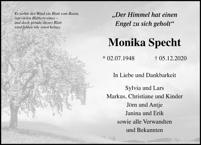 Hier finden Sie alle Traueranzeigen aus der Zeitung, die bisher für Monika Specht erschienen sind. Weitere Traueranzeigen, die in der Zeitung erscheinen, werden hier ebenfalls aufgelistet