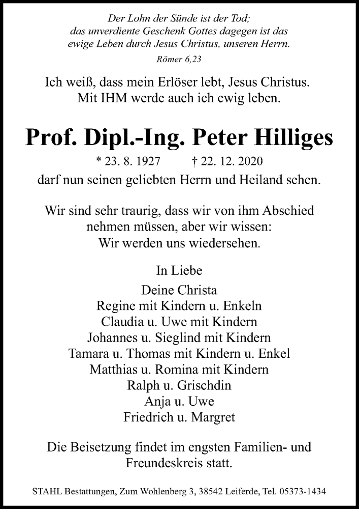 Hier finden Sie alle Traueranzeigen aus der Zeitung, die bisher für Peter Hilliges erschienen sind. Weitere Traueranzeigen, die in der Zeitung erscheinen, werden hier ebenfalls aufgelistet