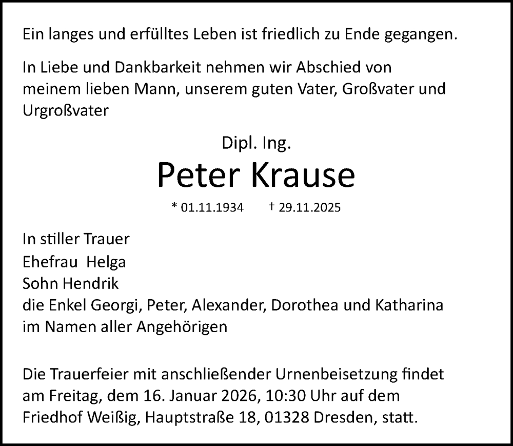 Hier finden Sie alle Traueranzeigen aus der Zeitung, die bisher für Peter Krause erschienen sind. Weitere Traueranzeigen, die in der Zeitung erscheinen, werden hier ebenfalls aufgelistet