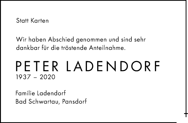 Hier finden Sie alle Traueranzeigen aus der Zeitung, die bisher für Peter Ladendorf erschienen sind. Weitere Traueranzeigen, die in der Zeitung erscheinen, werden hier ebenfalls aufgelistet