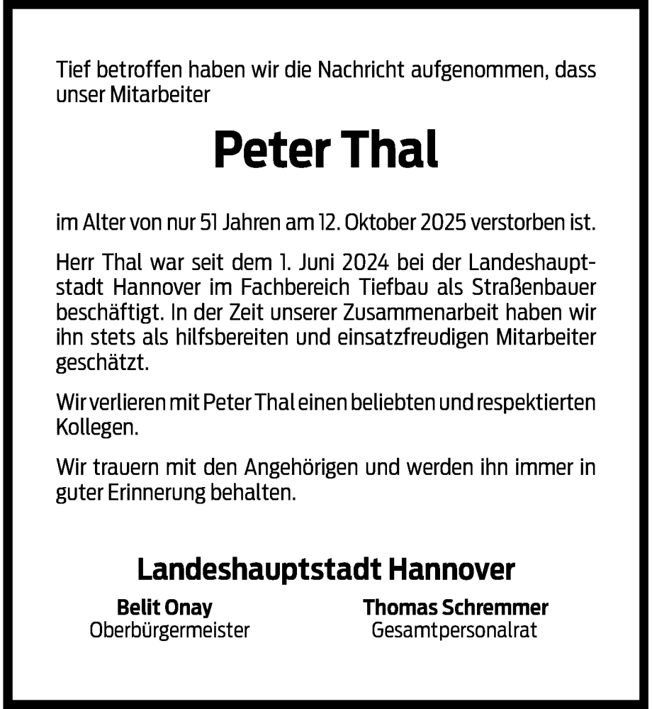 Hier finden Sie alle Traueranzeigen aus der Zeitung, die bisher für Peter Thal erschienen sind. Weitere Traueranzeigen, die in der Zeitung erscheinen, werden hier ebenfalls aufgelistet
