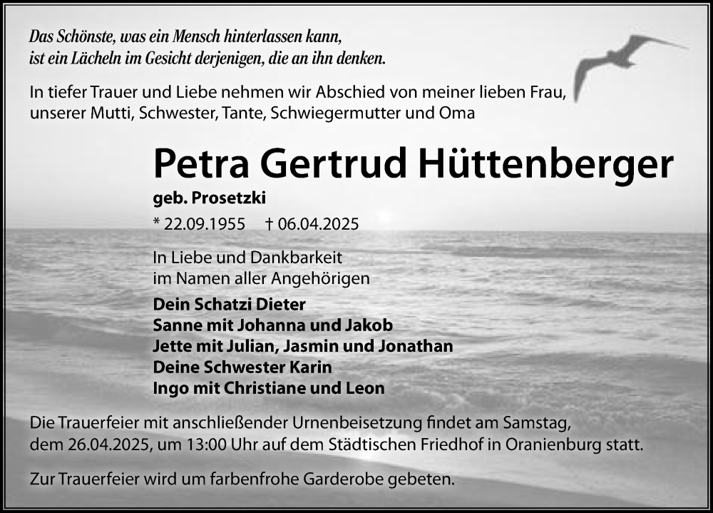 Hier finden Sie alle Traueranzeigen aus der Zeitung, die bisher für Petra Gertrud Hüttenberger erschienen sind. Weitere Traueranzeigen, die in der Zeitung erscheinen, werden hier ebenfalls aufgelistet