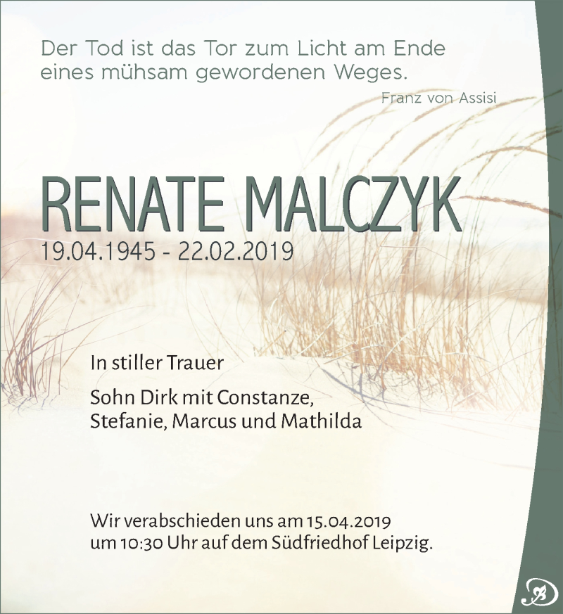 Hier finden Sie alle Traueranzeigen aus der Zeitung, die bisher für Renate Malczyk erschienen sind. Weitere Traueranzeigen, die in der Zeitung erscheinen, werden hier ebenfalls aufgelistet