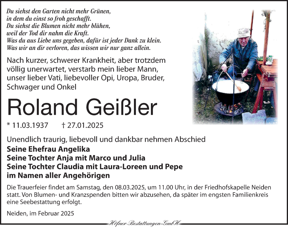 Hier finden Sie alle Traueranzeigen aus der Zeitung, die bisher für Roland Geißler erschienen sind. Weitere Traueranzeigen, die in der Zeitung erscheinen, werden hier ebenfalls aufgelistet