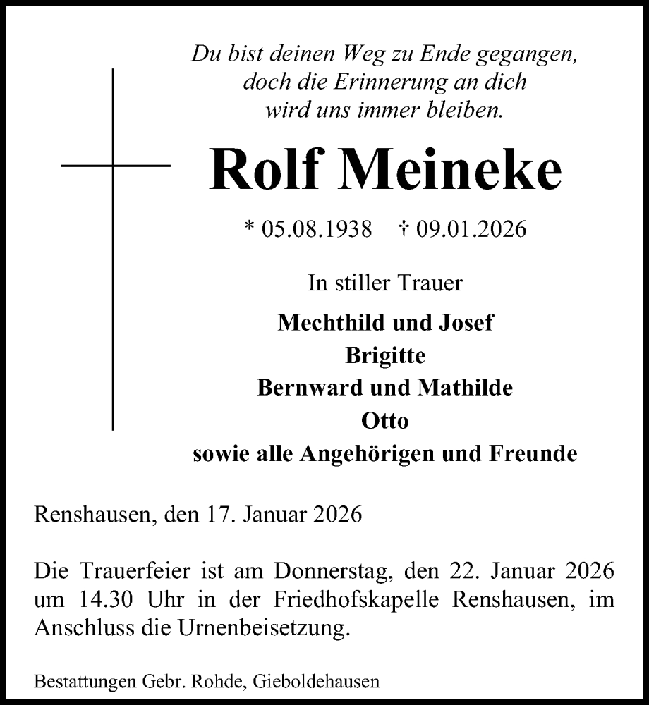 Hier finden Sie alle Traueranzeigen aus der Zeitung, die bisher für Rolf Meineke erschienen sind. Weitere Traueranzeigen, die in der Zeitung erscheinen, werden hier ebenfalls aufgelistet