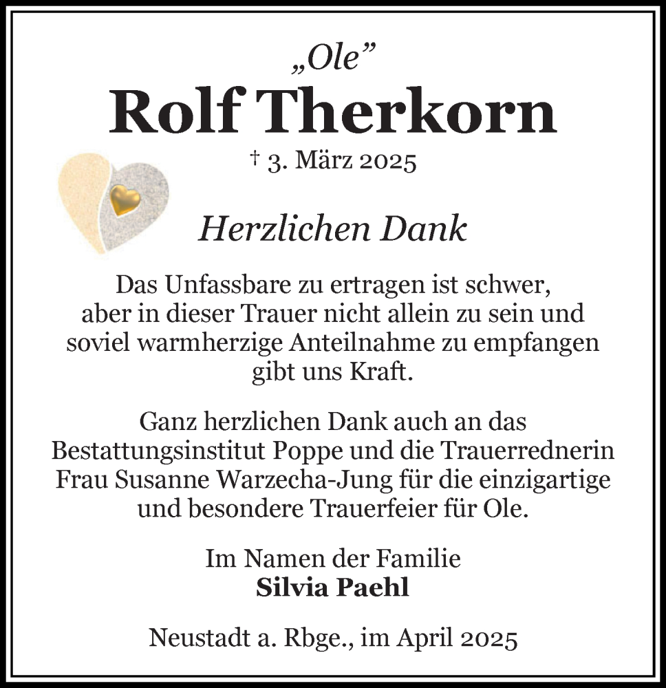 Hier finden Sie alle Traueranzeigen aus der Zeitung, die bisher für Rolf Therkorn erschienen sind. Weitere Traueranzeigen, die in der Zeitung erscheinen, werden hier ebenfalls aufgelistet