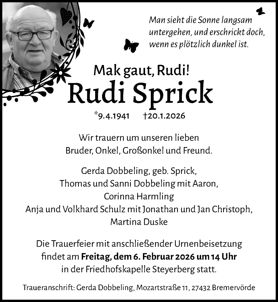 Hier finden Sie alle Traueranzeigen aus der Zeitung, die bisher für Rudi Sprick erschienen sind. Weitere Traueranzeigen, die in der Zeitung erscheinen, werden hier ebenfalls aufgelistet