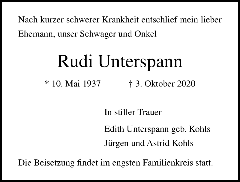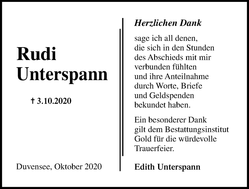 Hier finden Sie alle Traueranzeigen aus der Zeitung, die bisher für Rudi Unterspann erschienen sind. Weitere Traueranzeigen, die in der Zeitung erscheinen, werden hier ebenfalls aufgelistet