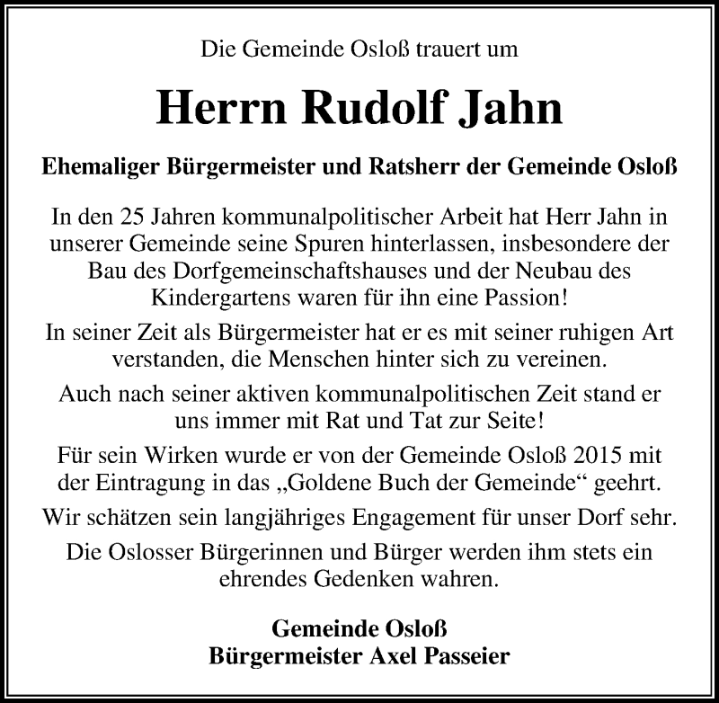 Hier finden Sie alle Traueranzeigen aus der Zeitung, die bisher für Rudolf Jahn erschienen sind. Weitere Traueranzeigen, die in der Zeitung erscheinen, werden hier ebenfalls aufgelistet