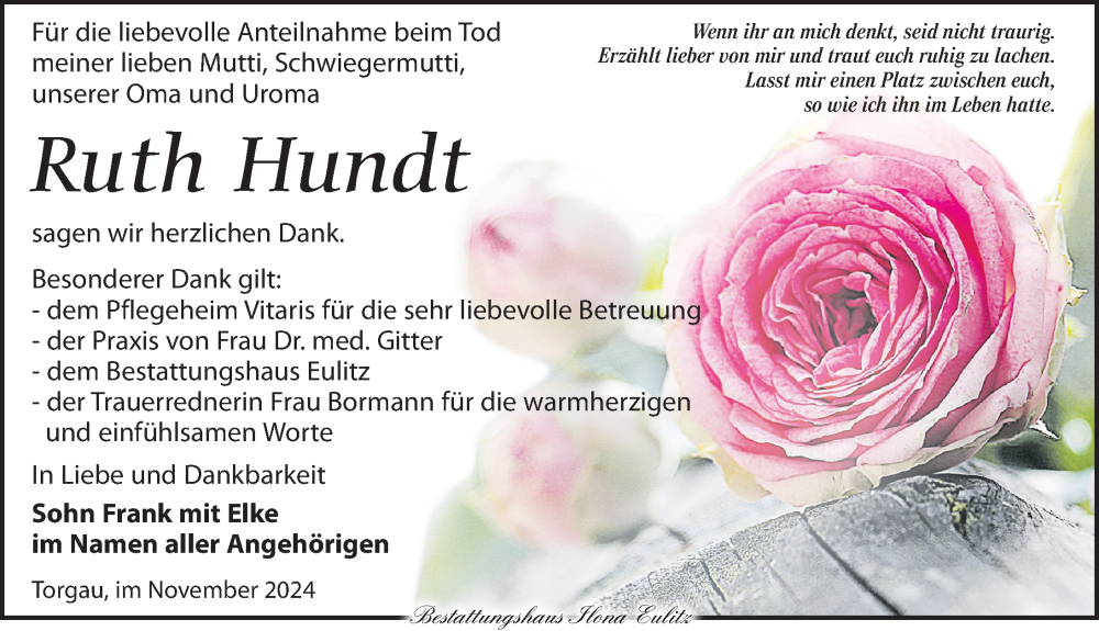 Hier finden Sie alle Traueranzeigen aus der Zeitung, die bisher für Ruth Hundt erschienen sind. Weitere Traueranzeigen, die in der Zeitung erscheinen, werden hier ebenfalls aufgelistet