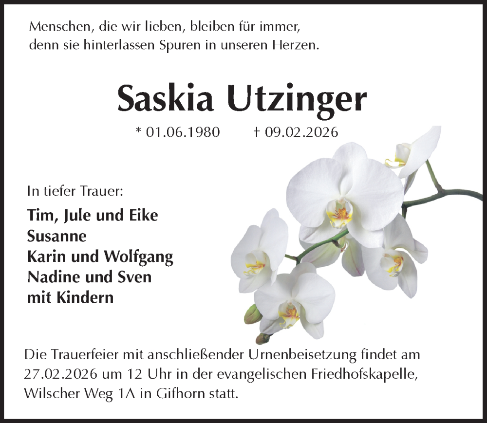 Hier finden Sie alle Traueranzeigen aus der Zeitung, die bisher für Saskia Utzinger erschienen sind. Weitere Traueranzeigen, die in der Zeitung erscheinen, werden hier ebenfalls aufgelistet